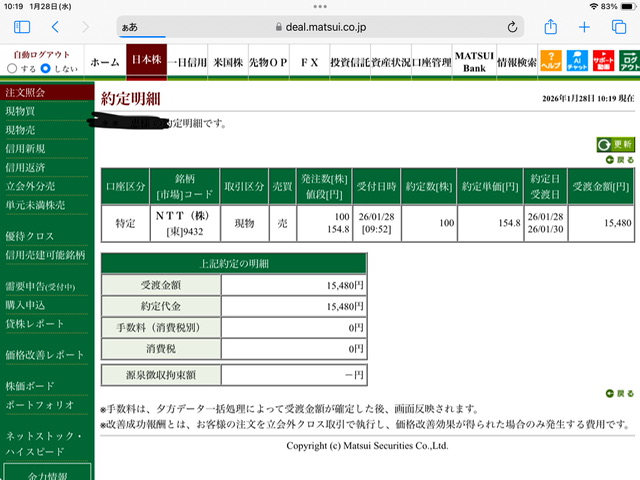NTT現物買い利確✖️3