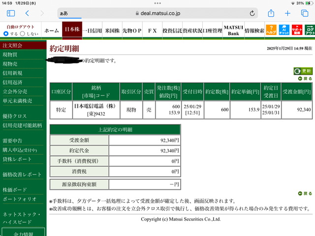 NTT現物買い利確✖️2