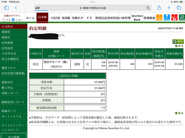 黒田グループ現物買い利確✖️3