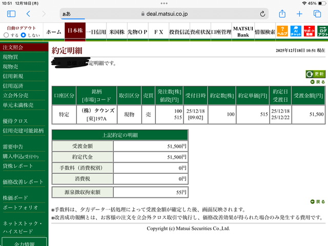 タウンズ現物買い利確✖️4
