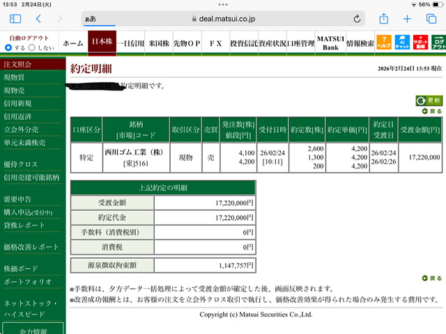西川ゴム現物買い利確✖️1