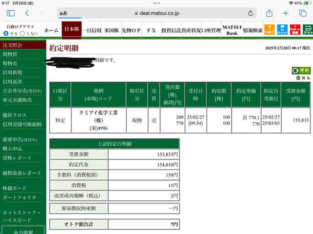 2月27日 今日の利確+7060円