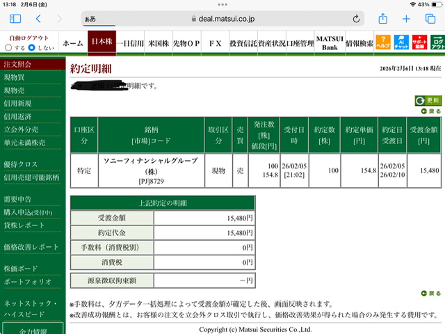 ソニーフィナンシャルグループ現物買い利確✖️6