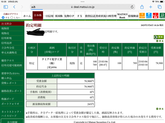 クミアイ化学工業現物買い利確✖️5
