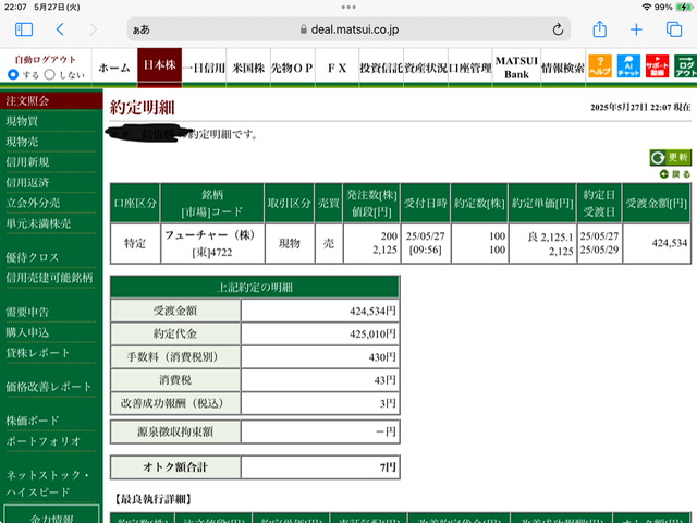 フューチャー現物買い利確✖️2